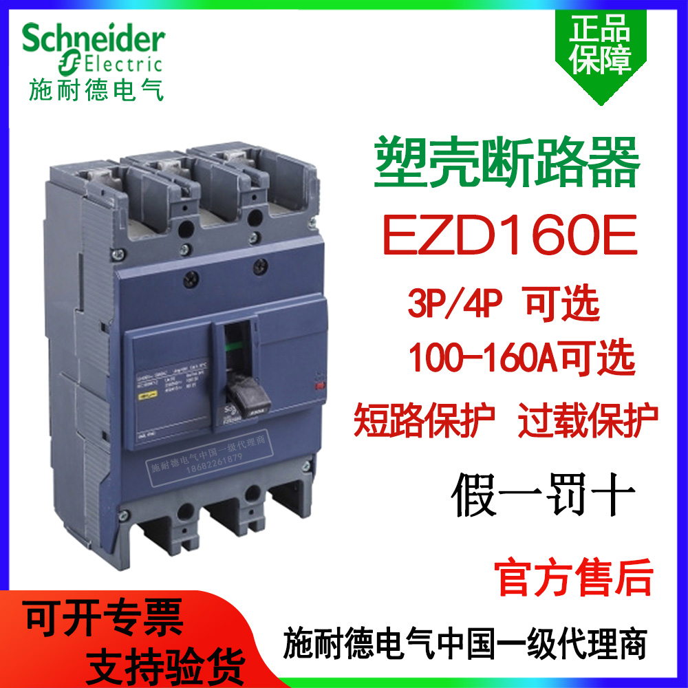 施耐德配電保護(hù)塑殼斷路器EZD160E短路過載保護(hù)3P/4P,施耐德塑殼斷路器代理商