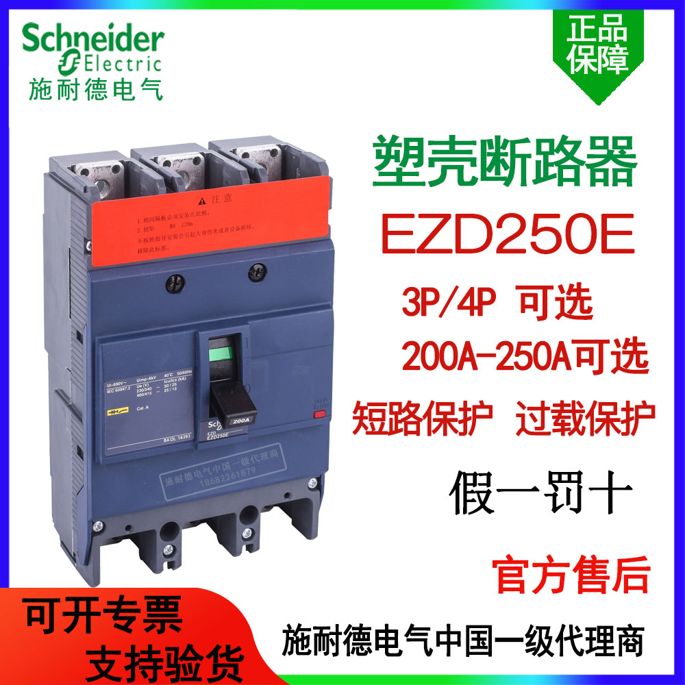 施耐德塑殼斷路器EZD250E短路過載保護3P/4P配電保護斷路器代理商