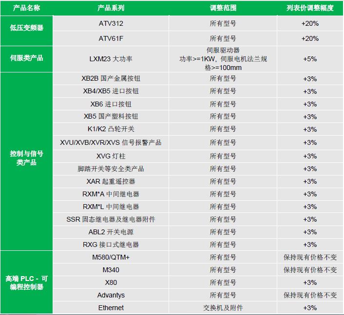 因原材料成本上升,為更好地適應(yīng)市場環(huán)境,施耐德電氣工業(yè)事業(yè)部決定對部分產(chǎn)品進行價格調(diào)